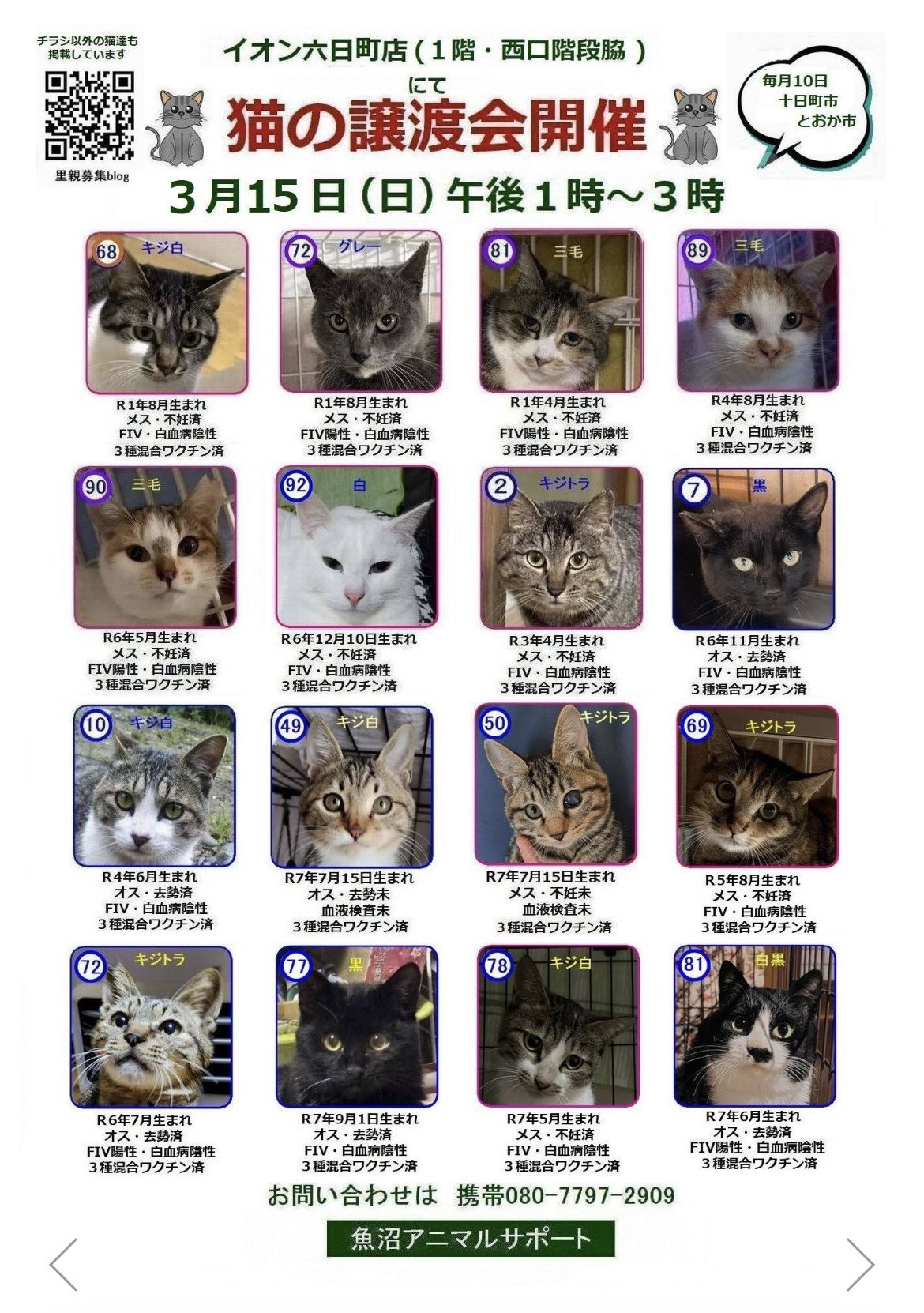 主催する「魚沼アニマルサポート」さんのホームページはこちらです。魚沼アニマルサーポートさんのホームページでは譲渡の会場にいない保護ネコちゃんたちの情報も掲載されていますので、ぜひ訪れてくださいね。