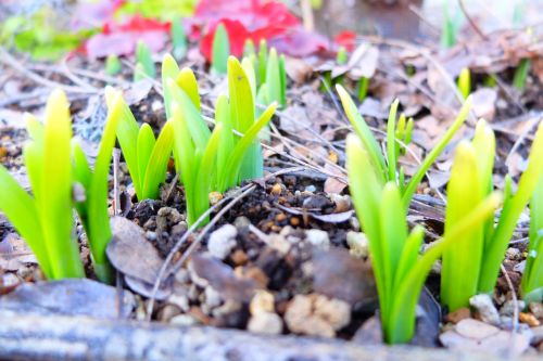 いまだ雪深い十日町も、めっきり日射しが春めいてきました。当院の花壇のスイセンも芽を出しました。